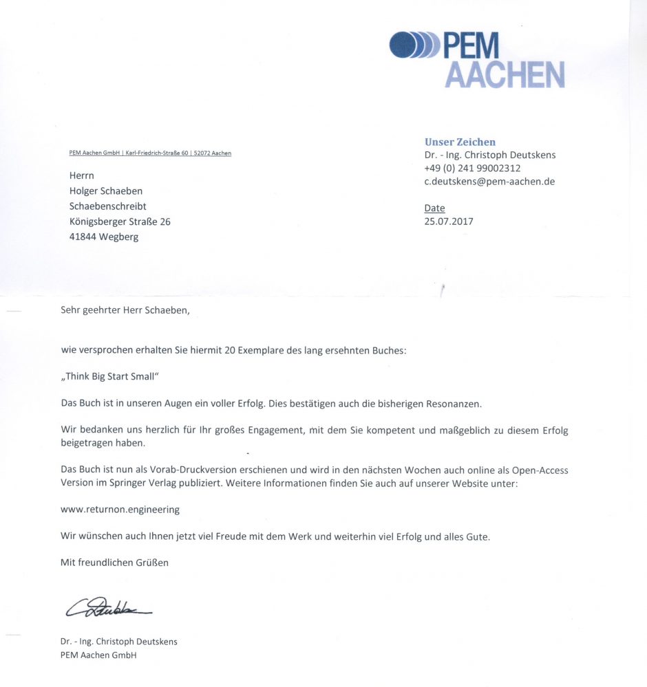 2017 durfte ich noch die Erfolgsstory »Think big - Start small« schreiben und zwischen zwei Buchdeckel bringen: https://www.amazon.de/Think-Start-Small-mobile-Innovationsprozesse/dp/3662549816/ref=sr_1_1?dchild=1&keywords=Think+Big+Start+small&qid=1594048563&sr=8-1